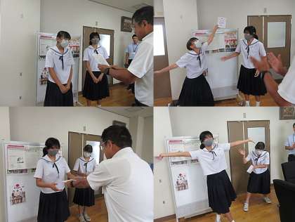 9月14日(木)夕方下校中に、学校周辺在住の方の車が、駐車場にはいることができず、立ち往生をした車を警察官が押していました。その様子を目撃し、すぐに二人で手伝いました。その後、車は駐車場に駐めることができました。