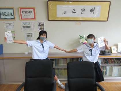 9月20日(水)、「堀川プライド賞」の受賞式・懇談会が校長室で行われました。今回受賞したのは、2年 大徳さん、榮野さんです。