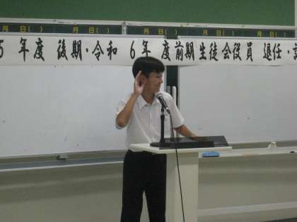 選挙管理委員長の選挙総括、「堀中の顔」という大役を終えた前生徒会長の言葉、そしてこれからの堀中を牽引する新生徒会長の挨拶、どれも内容の濃い素晴らしい話でした。