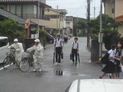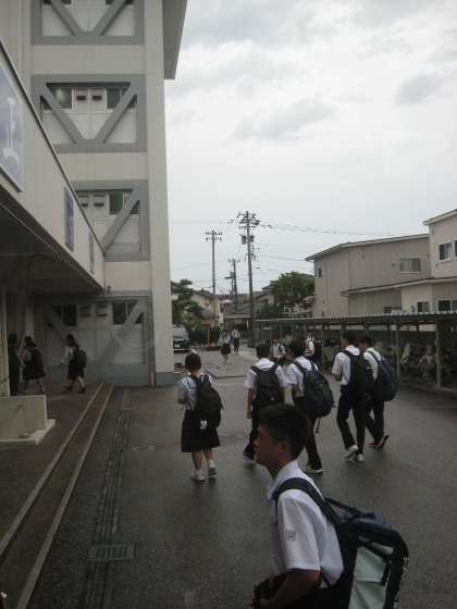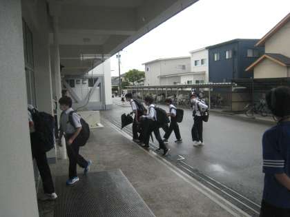 雨雲の広がる朝になりましたが、元気に登校する生徒たちの姿が見られました。