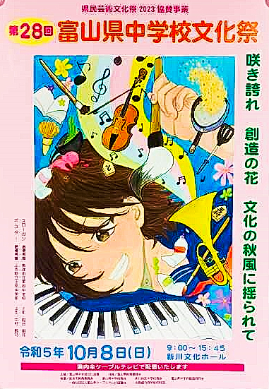 10月8日(日)、新川文化ホールで第28回富山県中学校文化祭が行われます。