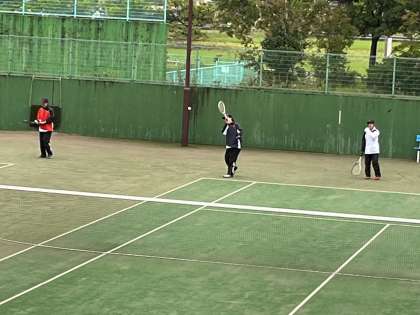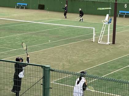 土砂降りという悪天候の中、コート解放が始まり、今練習をしています。