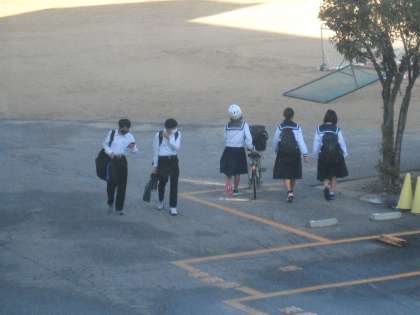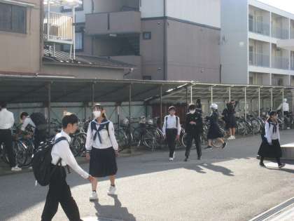 青空の下、元気に登校する生徒たちの姿が見られました。