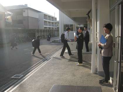 さわやかな青空と、さわやかな声が響く生徒玄関です。