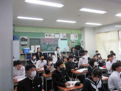 はじめは、委員の皆さまに授業を見て頂きました。授業によっては、「学び合い」が行われておりました。