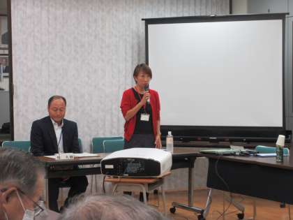 その他、学校からの報告があった後、本校の「部活動カウンセラー」の湯浅さんから、本校部活動の現状と課題について説明がありました。