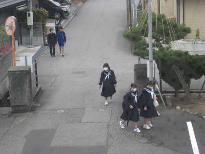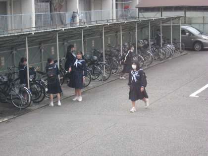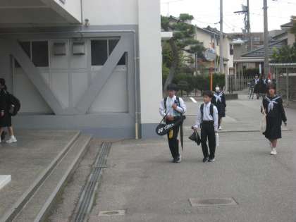 今日から2年生は「社会に学ぶ『14歳の挑戦』」です。学校で活動する生徒が体育服で登校する姿も見られました。