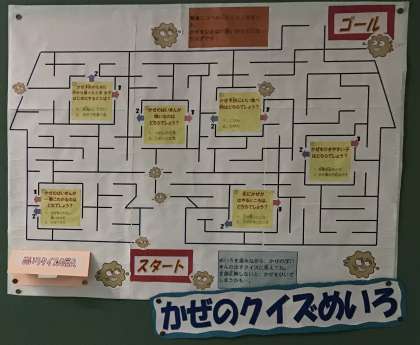 今週から「かぜをひくしくみ・かぜの迷路等」です。保健室前に行き、迷路に挑戦してみよう。