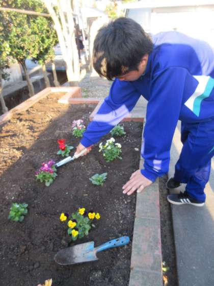 11月9日(木)放課後、美化委員を中心に花壇の植え替えを行いました。