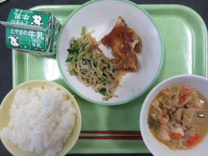 ごはん、昆布和え、揚げ魚のみぞれだれ、白菜鍋、牛乳