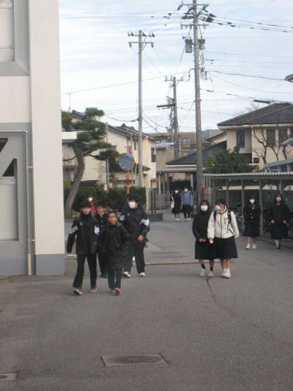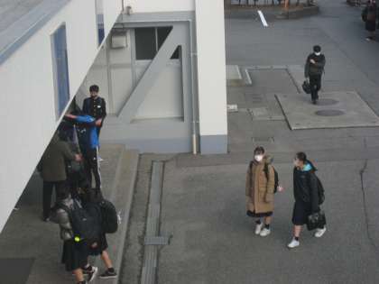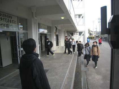 朝の生徒玄関では、即席アーチを作って迎える3学年担当教員に思わず笑顔になる生徒の姿が見られました。