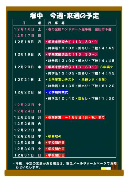 12月18日(月)からの予定