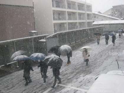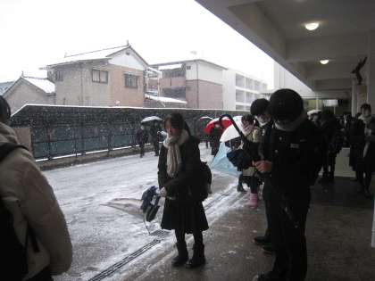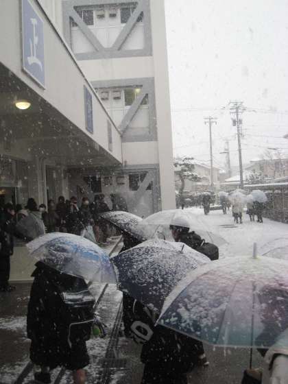 2学期締めくくりの今日は、富山らしさあふれる登校風景になりました。