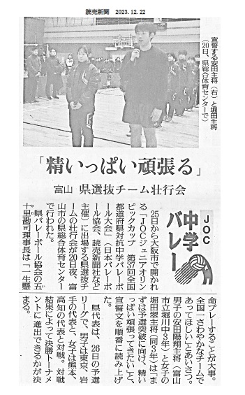 12月22日(金)読売新聞の地域コーナーに、「JOCジュニアオリンピックカップ(バレーボール)の記事が掲載されました。