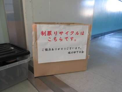 3年生の進路懇談会(1月16日〜1月18日)の期間を利用して、制服リサイクルを行っています。生徒玄関に設置しておりますので、ご協力ください。
