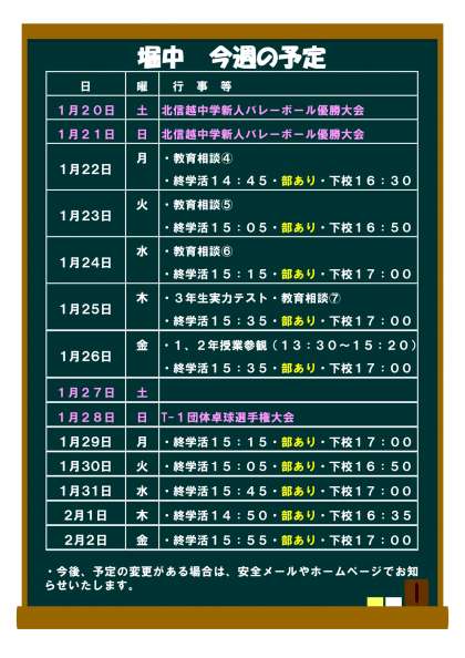 ・今後、予定の変更がある場合は、安全メールやホームページでお知らせいたします。