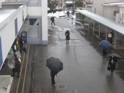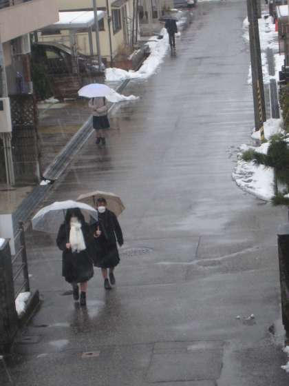 今日の天気は雨時々曇、最高気温6度、降水確率は80%の予報です。