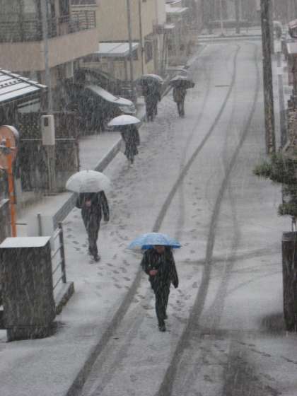 今日の天気は雨時々雪、最高気温6度、降水確率は90%の予報です。