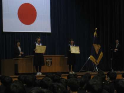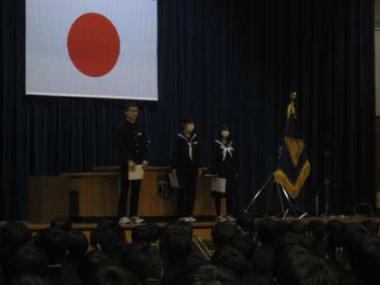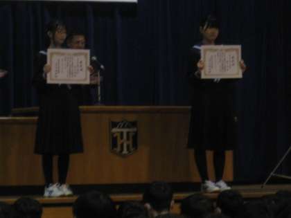 同窓会入会式の後、3年生関係の受賞報告と受賞伝達式を行いました。