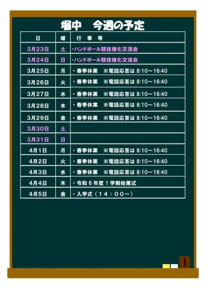 3月25日(月)からの予定