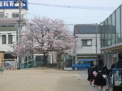 4月8日(月)、全校生徒がそろってのスタートです。校庭の桜も満開です