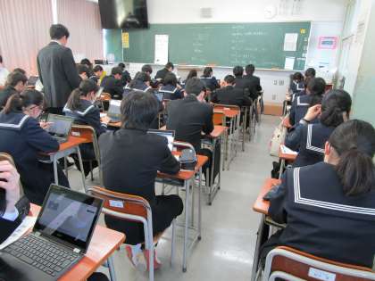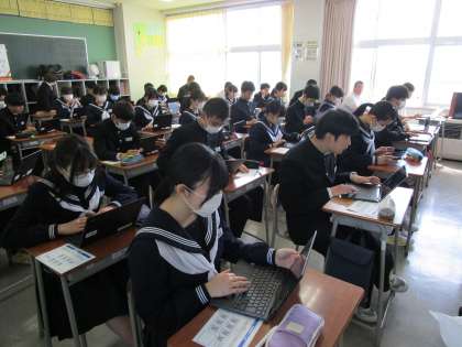 3年生は本日1、2限に、生徒質問調査を行いました。昨年までは筆記にて行っていた調査でしたが、今年度からWebシステムでの実施となり、クロームブックを使って回答をしました。学習意欲、学習方法、学習環境、生活の諸側面等に関する質問調査となります。