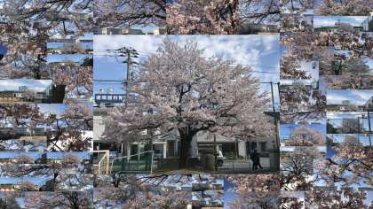 本校の校庭の桜が満開です。コラージュを作成しました。
