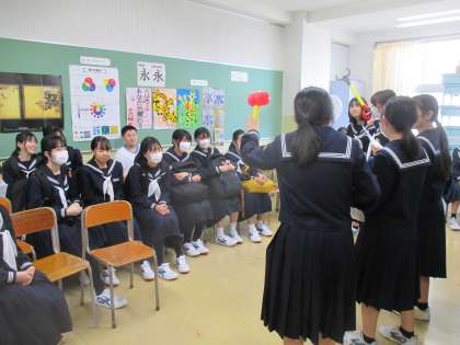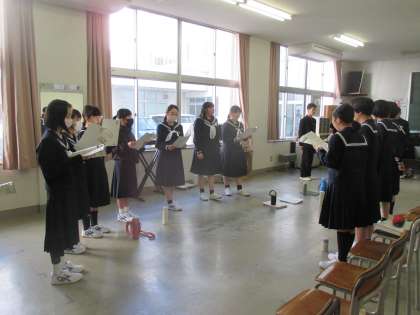 上:合唱部では、1年生が2,3年生に混じって一緒に合唱していました。