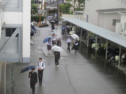 5月9日(木)、今朝も肌寒く、防寒着を着て登校する生徒もいます。