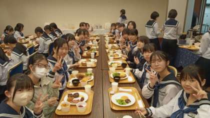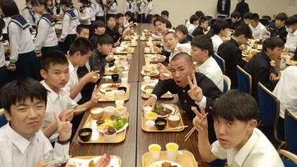 3組 みんな表情に疲れが表れていますが、朝食をとり、元気にクラス別活動に臨みます。