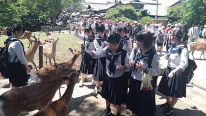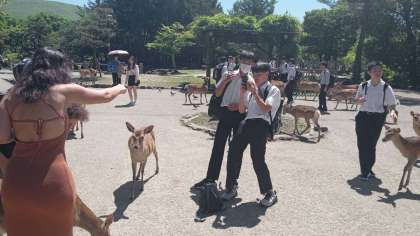 3組 東大寺での活動の様子です。海外からの観光客の方の写真も撮ってあげていました。