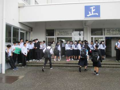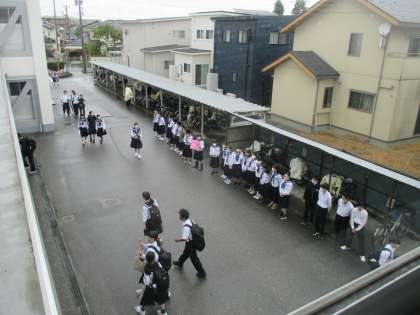 5月29日(水)、今日から「各部で繋ごう挨拶バトン」が始まりました。初日の担当は、陸上競技部と合唱部です。いつも以上に元気な「おはようございます」の声が響き渡っていました。