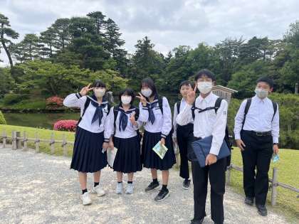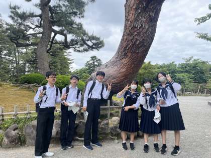 1組 兼六園にて金沢の風情を楽しんでいます。