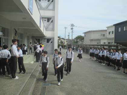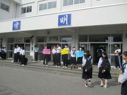 6月6日(木)、「各部で繋ごう挨拶バトン」7日目。担当は、バトミントン部男女です。今朝は、校区の小学校でも「小中連携あいさつ運動」が行われています。