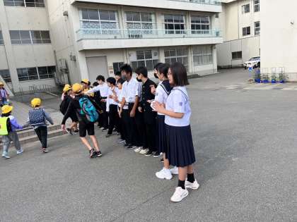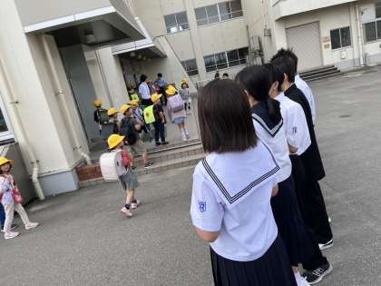 6月6日(木)、堀川南小学校の小中連携あいさつ運動の様子です。児童会の皆さんありがとうございました。