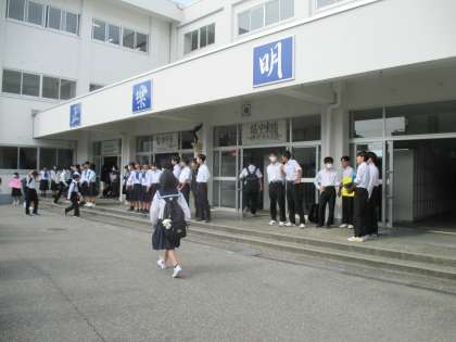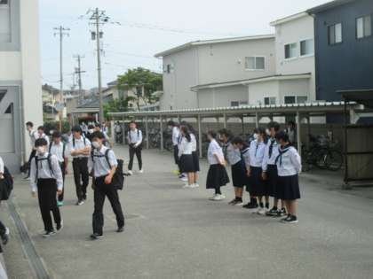 6月7日(金)、「各部で繋ごう挨拶バトン」8日目の担当は、吹奏楽部です。さわやかな挨拶が交わされていました。