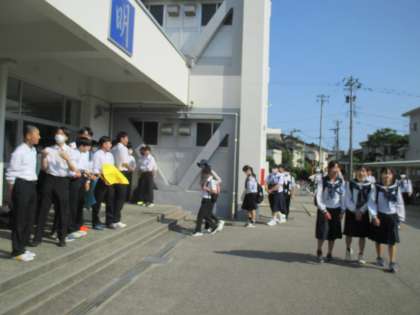 6月11日(火)、「各部で繋ごう挨拶バトン」10日目の担当は、バレーボール部男女です。さわやかな挨拶の声が響いていました。