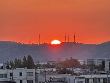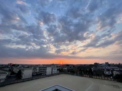 6月12日(水) 壮行会後の部活動を見守るように、夕日が綺麗でした。