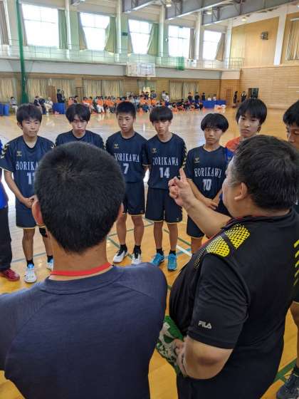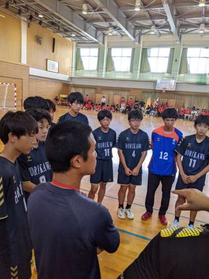 前半11-14で3点リードを許していますが、後半頑張ります!