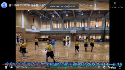 6月27日(木) 富山市中学校総合選手権大会2024.6.14〜6.16 のスライドショーを作成しました。