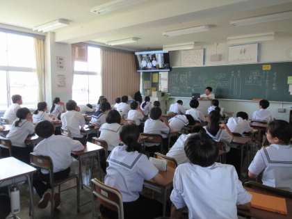 1学年 6限 壮行会・全校結団式オンライン視聴の様子です。