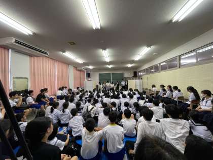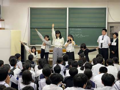 お昼の校内放送などで案内したところ、120名ほどの観客を前に堂々とした演技を披露しました。