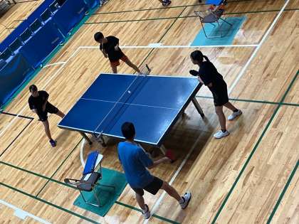 堀川卓球部北信越大会会場にて公式練習開始。明日の大会に向けて備えています。応援よろしくお願いします!