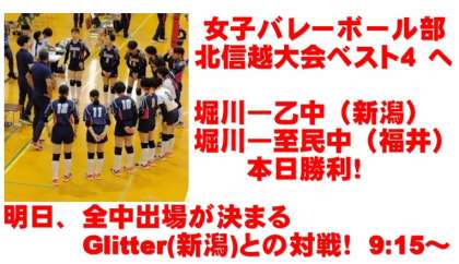 明日8月7日(水)長岡市みしま体育館で、9:15からGlitter(新潟県)と全中出場をかけて戦います!応援よろしくお願いします!