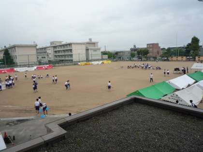 本日は、午前中に運動会予行練習を行うため、朝から会場設営がありました。