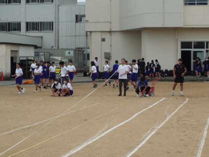 準備が進む中、登校した一般生徒も、随時グラウンドに集まって、朝学活を行いました。