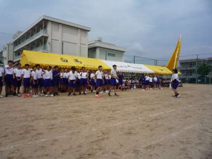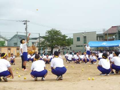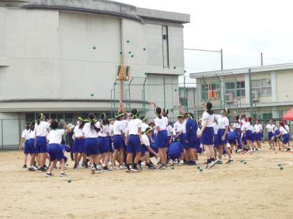 1学年種目「玉入れ」の様子です。上級生も団席から、大きな声援を送っています。