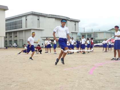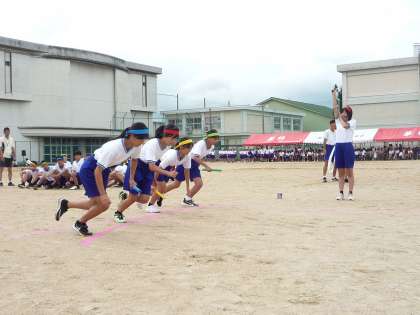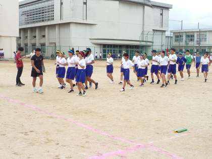 団対抗リレーの様子です。今日は、一部の走者のみ、走りました。勝負は明日におあずけです。どんなレースになるか、楽しみですね。