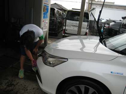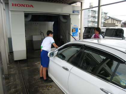 生徒2人は洗車の拭き上げに取り組んでいるところでした。指導ボランティアの方にお礼を伝えると、「ウェルカムです」と言ってくださいました。