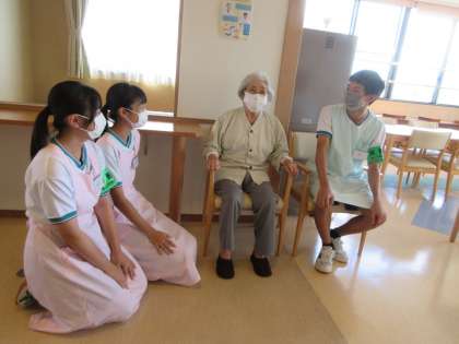 車椅子の扱いやシーツ交換、患者さんとの触れ合いや搬送等、日々、いろいろな科の体験をさせてもらっています。